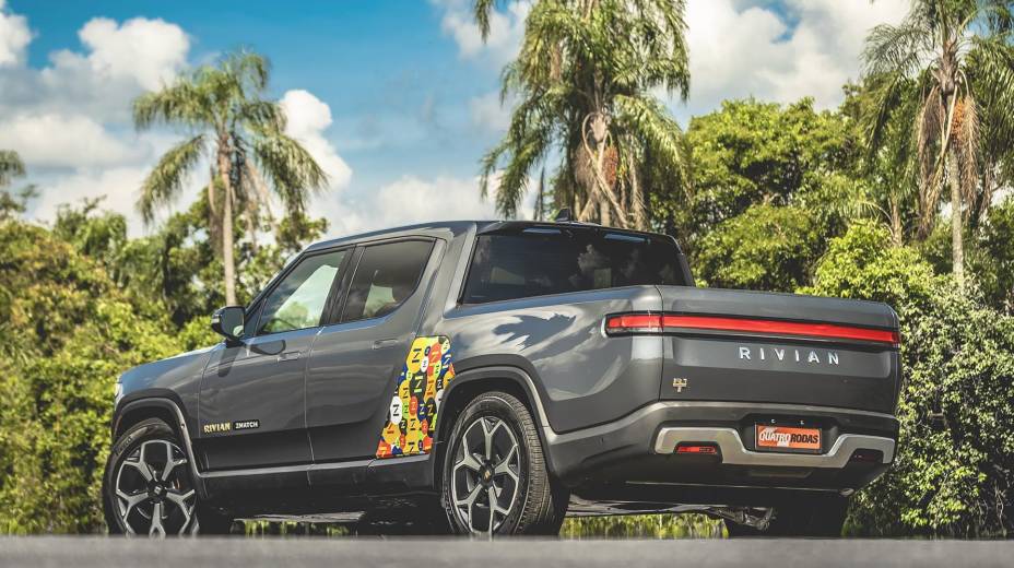 A versão mostrada aqui é uma Rivian R1T Adventure, que nasceu como intermediária e, hoje, é a única disponível para encomendas. Ela pertence à Zmatch, uma plataforma de locação e compartilhamento de veículos elétricos. É, claro, fruto de uma importação independente. Nos Estados Unidos essa configuração custa aproximadamente 95.000 dólares, mas chega ao Brasil por cerca de R$ 1 milhão.
