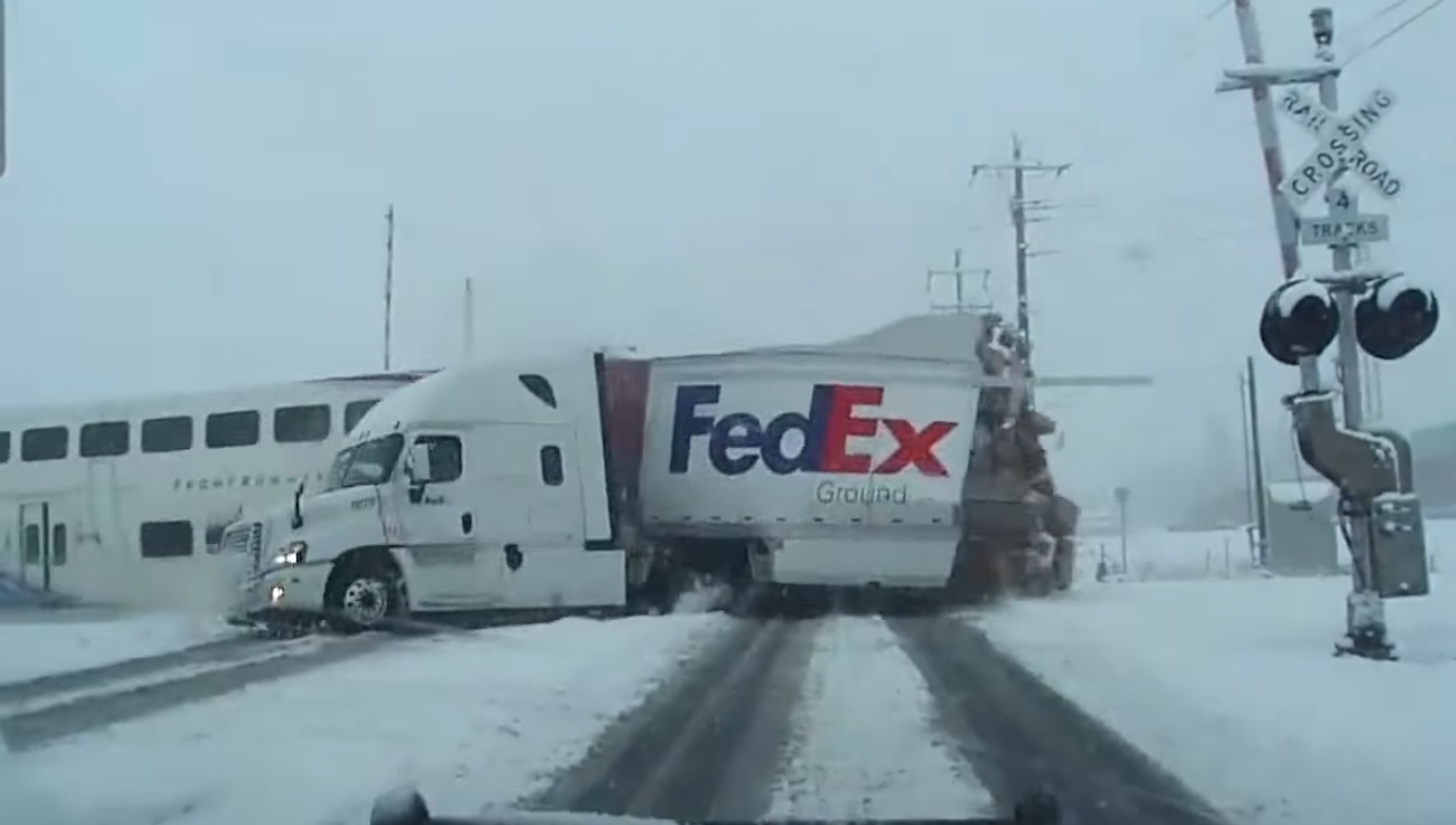 Chocante: caminhão é partido ao meio por trem nos EUA
