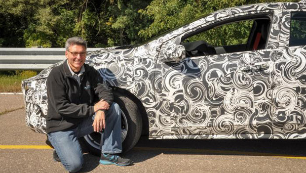 A Chevrolet começa a dar dicas sobre a próxima geração do Volt. A montadora revelou nesta segunda-feira (29) um teaser do modelo: uma imagem de Andrew Farah, engenheiro-chefe responsável pelo projeto, ao lado de uma unidade camuflada do carro elétrico.