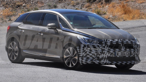 A Citroën deverá lançar em 2015 uma reestilização do DS5. Os espiões de QUATRO RODAS flagraram o modelo repleto de camuflagem em testes no sul da Europa, região que vive um verão de temperaturas bastante elevadas.