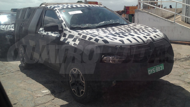 Segue em ritmo intenso o desenvolvimento da picape média da Fiat. Exatos três meses depois de um leitor ter enviado um flagrante do modelo rodando numa estrada brasileira, QUATRO RODAS recebeu novas imagens da picape. O autor das imagens foi Neudson Ramos de Siqueira, que aproveitou uma parada do protótipo num posto de combustível em Garanhuns (Pernambuco) para clicá-lo.