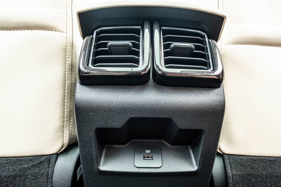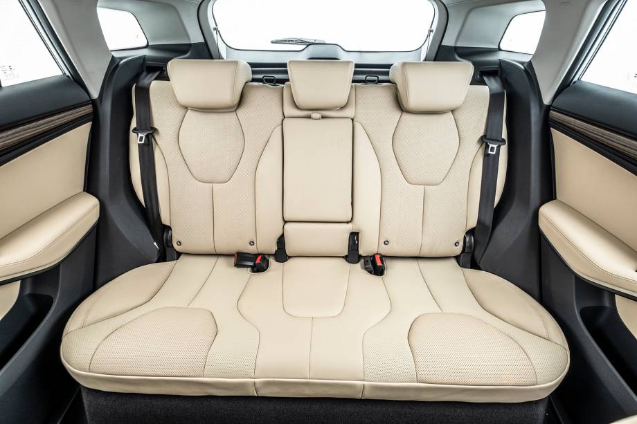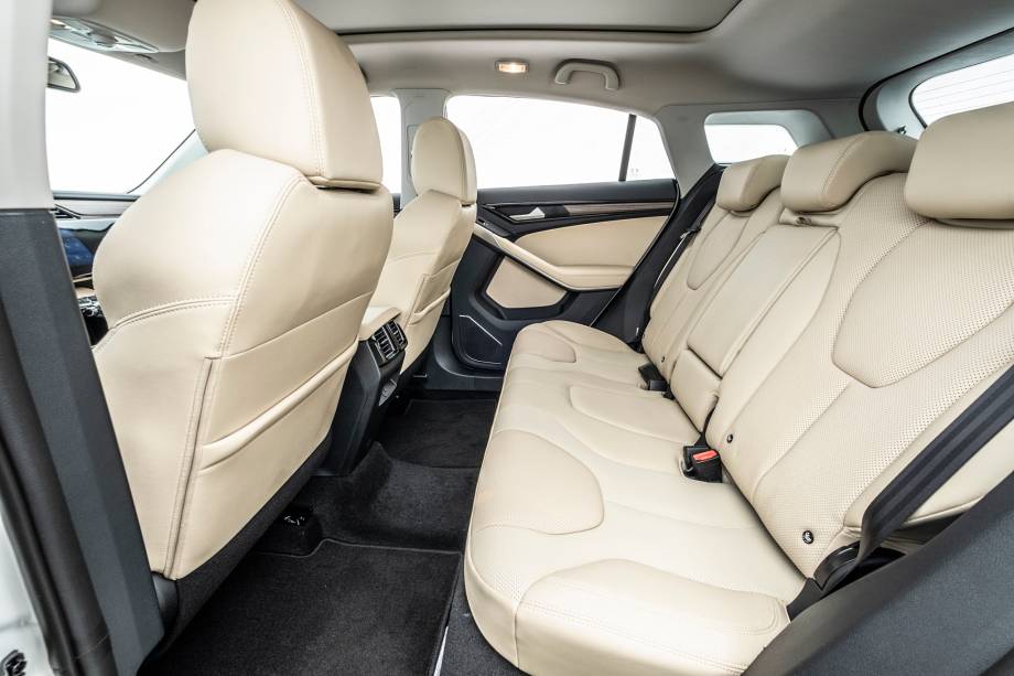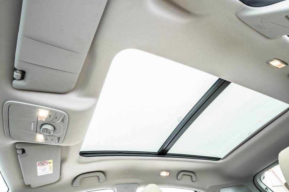 Rodas de liga leve de 17″ com pneus 235/55; teto solar panorâmico elétrico; lanternas traseiras em LED; faróis e luzes diurnas em leds; faróis de neblina dianteiros; retrovisores externos na cor do veículo, com luzes indicadoras de direção e ajuste elétrico; bancos com revestimento premium na cor Dark Charcoal; ar-condicionado automático digital com saída para os bancos traseiros; banco traseiro bipartido e rebatível com apoio de braço central e porta-copos; volante em couro com ajuste manual em duas posições; banco do motorista com ajuste manual de seis posições; banco do passageiro com ajuste manual de quatro posições; alças de apoio de teto para as duas fileiras; luzes traseiras de leitura; assistente de partida em rampas (HLA); controle eletrônico de estabilidade (ESC) e tração (TCS); freios a disco nas quatro rodas, com ABS e EBD; sensor de monitoramento de pressão dos pneus; cintos de segurança dianteiros com ajuste de altura; 6 Airbags (frontais, laterais e cortina); Isofix; espelho retrovisor interno eletrocrômico; painel de Instrumentos analógico com visor TFT de 3.5″ colorido; sensor de estacionamento traseiro; piloto automático; câmera de ré; chave com sensor de presença e partida sem chave; computador de bordo; tomada 12V; tela central multifuncional sensível ao toque HD de 10.1″; espelhamento Apple CarPlay sem fio; três entradas USB frontais (duas para carga e uma para transferência de arquivo); entrada USB para carregamento traseira; conectividade por cabo com Android Auto; comandos de áudio e voz no volante; bluetooth; sistema de som com seis alto-falantes.