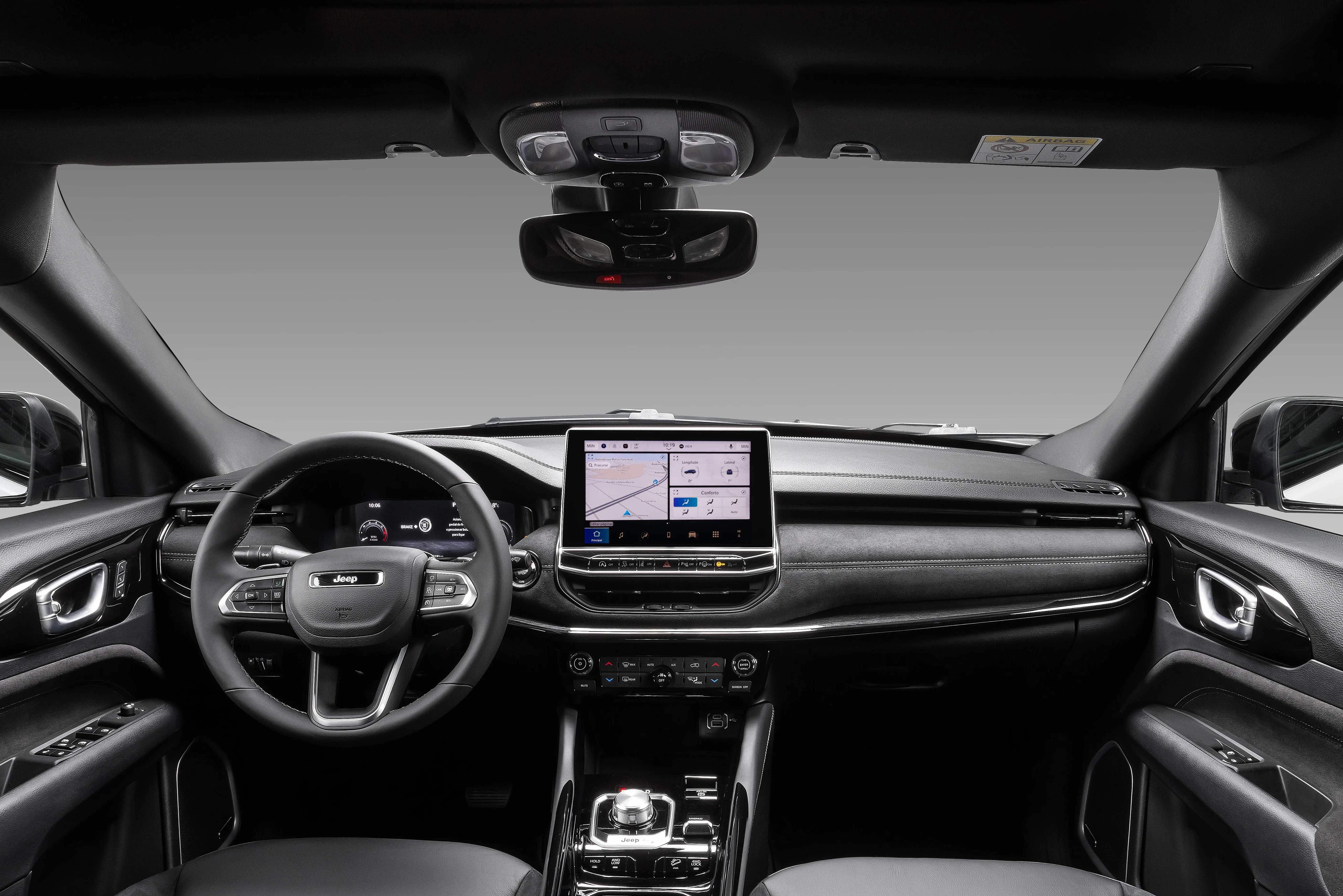 Jeep Commander Longitude T270 – R$ 228.790 A configuração de acesso traz rodas de liga leve de 18 polegadas, pacote ADAS nível 2, seis airbags e sistema de som com seis alto-falantes. O interior conta com sete assentos revestidos em couro preto, banco do motorista com ajustes elétricos, ar-condicionado de duas zonas com regulagem de intensidade para as fileiras traseiras, abertura elétrica do porta-malas e sistema de estacionamento semiautônomo.