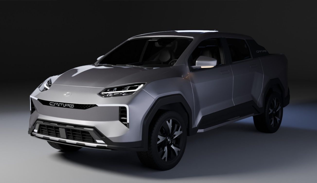 Há uma inspiração clara na Tesla Cybertruck e não é para menos. A Lecar tem usado a fabricante de carros elétricos como influência em diversos aspectos, como no design do 459, claramente baseado no Tesla Model Y. A Campo até chegou a ser batizada como Cybercampo quando foi anunciada.