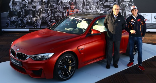 Como o titular da Honda partiu da posição de honra em nada menos do que 13 etapas em 2014, não teve adversários para faturar o M4 personalizado oferecido pela BMW. O novo cupê de Marquez tem cor de carroceria vermelho metálico, transmissão de dupla-embreagem Drivelogic, freios de cerâmica, entre outros detalhes especiais.