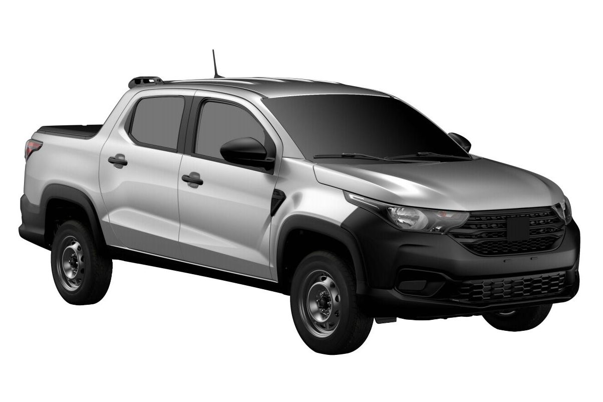 Imagens de patentes revelaram cada uma das versões da picape com carroceria cabine dupla – que agora passa a ter sempre quatro portas. Inclusive da mais básica, com rodas de aço estampado e para-choque sem pintura, assim como na carroceria cabine simples.