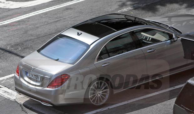Aparentemente escalado para sessões de fotos de divulgação, o sedã foi surpreendido pelas lentes dos caçadores de segredos. À primeira vista, o Classe S perdeu um pouco da sisudez de seu antecessor. Os faróis nitidamente inspirados no novo CLS e a vistosa grade frontal inspirada no carro-conceito F700 dominam a dianteira. Em contrapartida, algumas soluções estéticas foram descartadas no modelo, como os arcos dos para-lamas pronunciados.