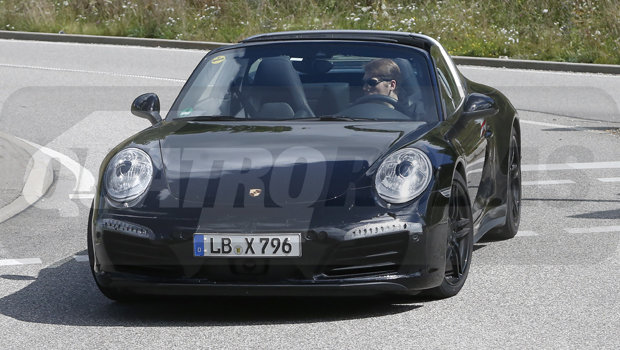Tal qual o modelo “sem teto”, o 911 Targa traz novas maçanetas, nova grade frontal, novos para-choques (no dianteiro, com dutos de ar ativos), entre outras novidades. Devido à camuflagem, não é possível visualizar claramente os faróis e as lanternas.