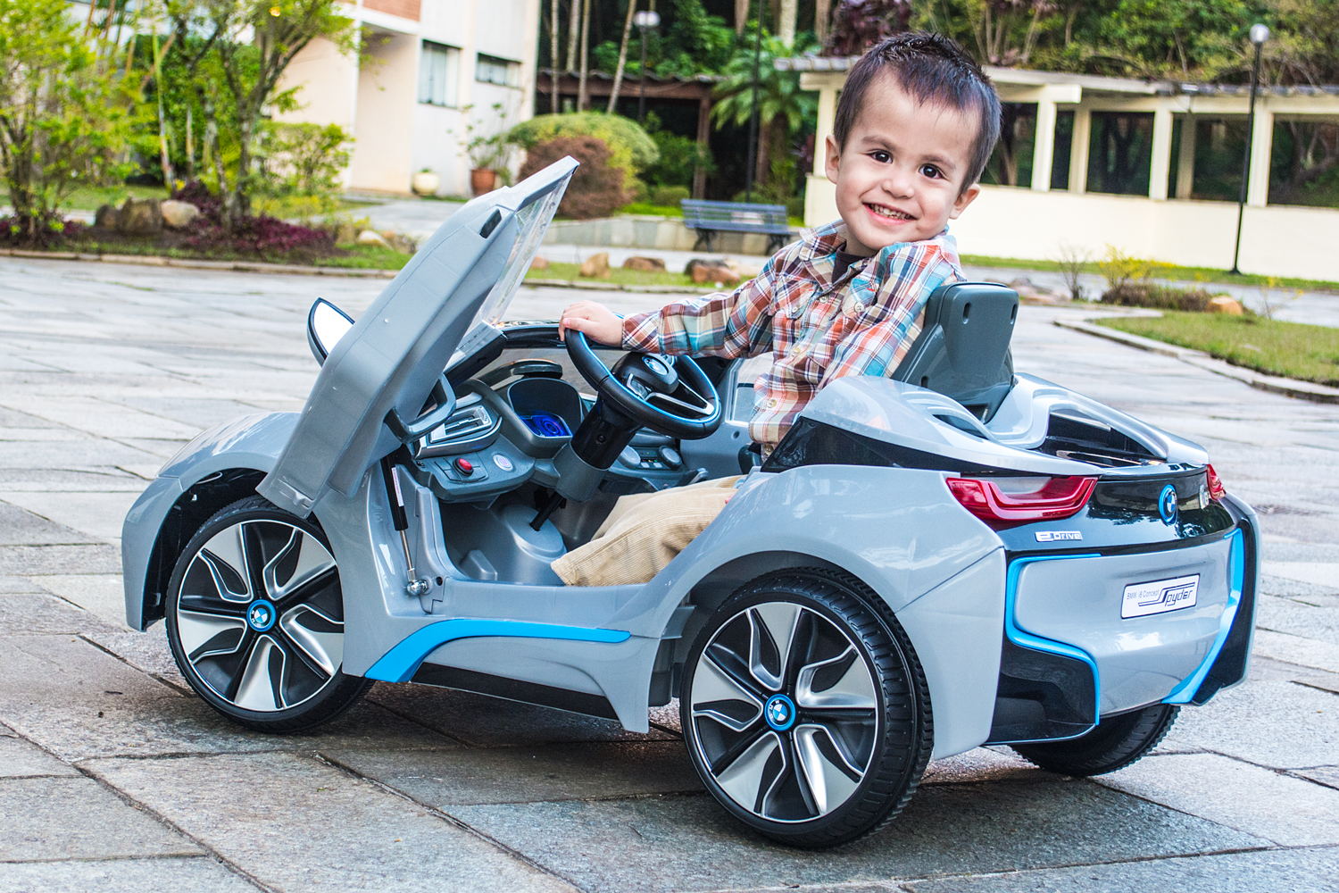 O BMW i8, modelo mais caro da linha, é de 12V – isso faz dele mais forte e mais rápido que os demais. Também é mais sofisticado: as portas do tipo tesoura contam com amortecedores pressurizados, rádio FM, entrada auxiliar de som e buzina no volante.