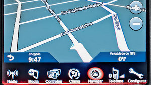 Uma das centrais mais completas entre os compactos. Além de cumprir bem as tarefas básicas do dia a dia, como reproduzir faixas de MP3, oferece um navegador GPS completo, com opções de rotas mais curtas e recálculo rápido do trajeto em caso de erro. Pena que não seja fácil operá-la: o menu é bastante confuso. Durante nosso teste, a música foi interrompida várias vezes antes de o GPS dar as coordenadas do caminho, em vez de apenas sobrepor o áudio à música, como na maioria das centrais.