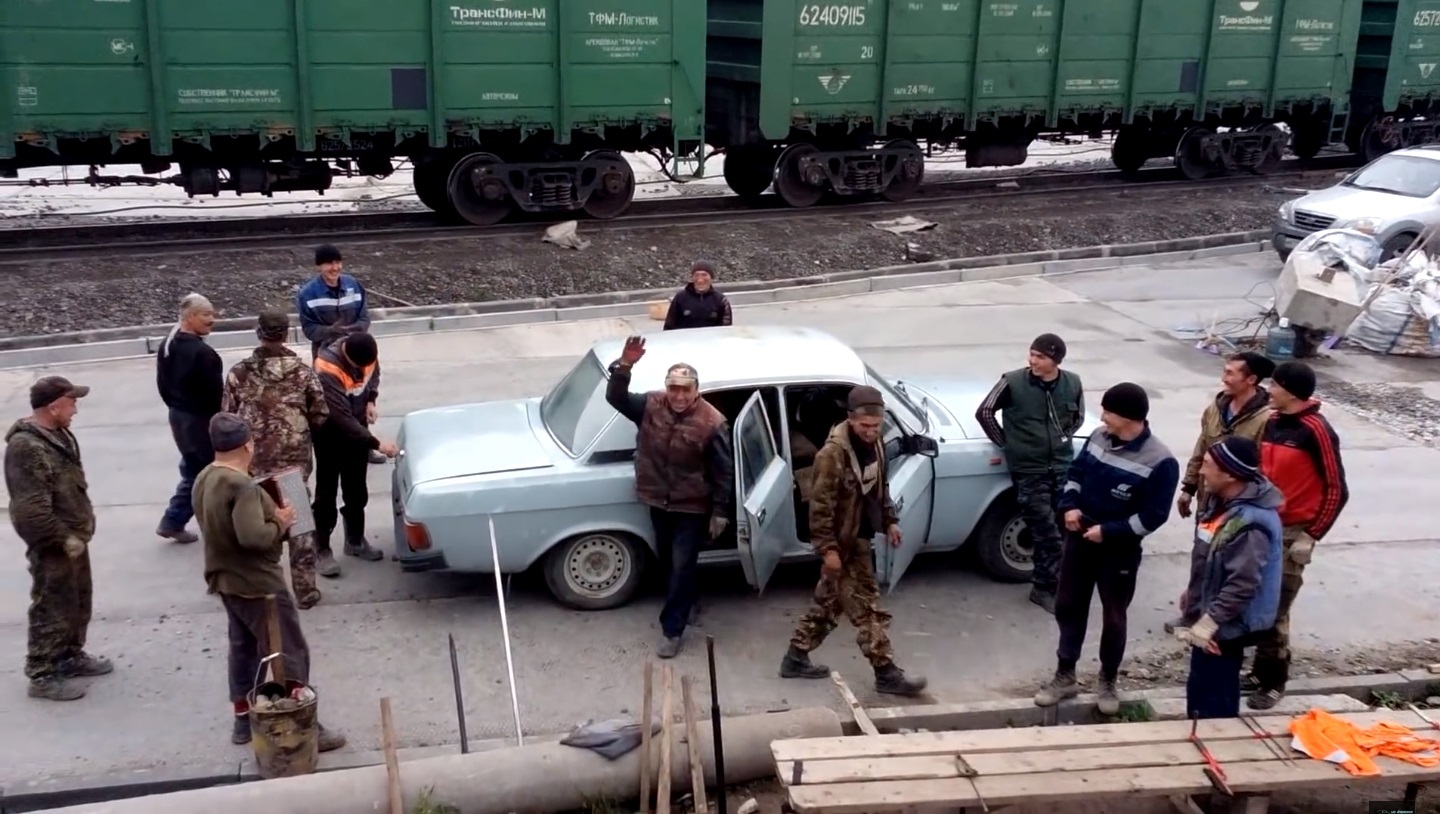 Um sedã quadradão ao melhor estilo soviético, o GAZ 31029 Volga (fabricado na década de 90) que aparece no início do vídeo parece apenas um tanto carregado, com a traseira quase raspando no chão. Eis que, de maneira quase inocente, ele revela o que levava a bordo.