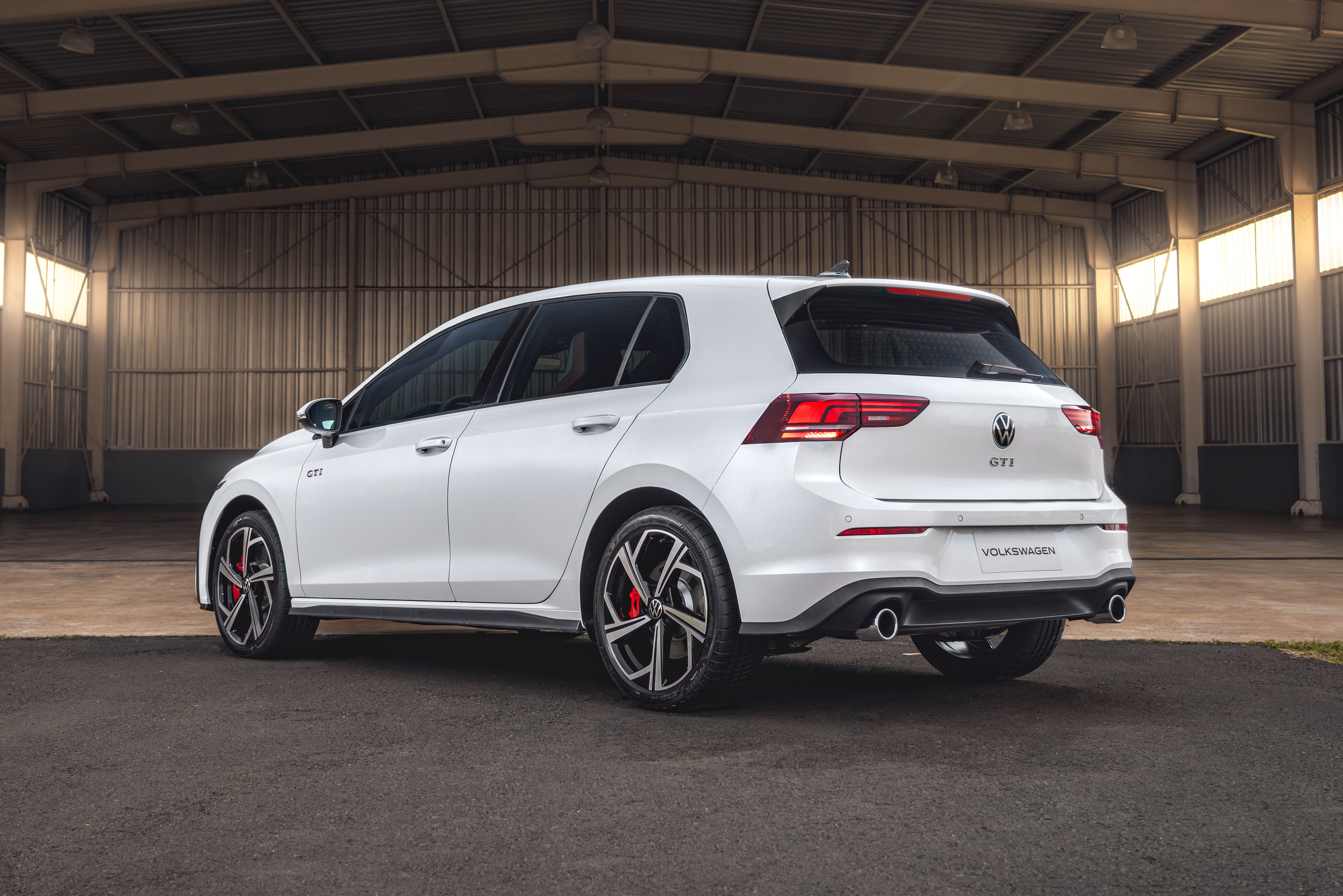 A traseira tem lanternas horizontais full led, dupla saída de escape e o nome GTI centralizado, sem qualquer nomenclatura “Golf”. As rodas são de 18 polegadas com acabamento diamantado e pneus 225/40. Novamente na lateral há o emblema GTI, sempre em vermelho. A carroceria tem quatro opções de cores: branco Puro, preto Mythos, cinza Moonstone e vermelho Kings.