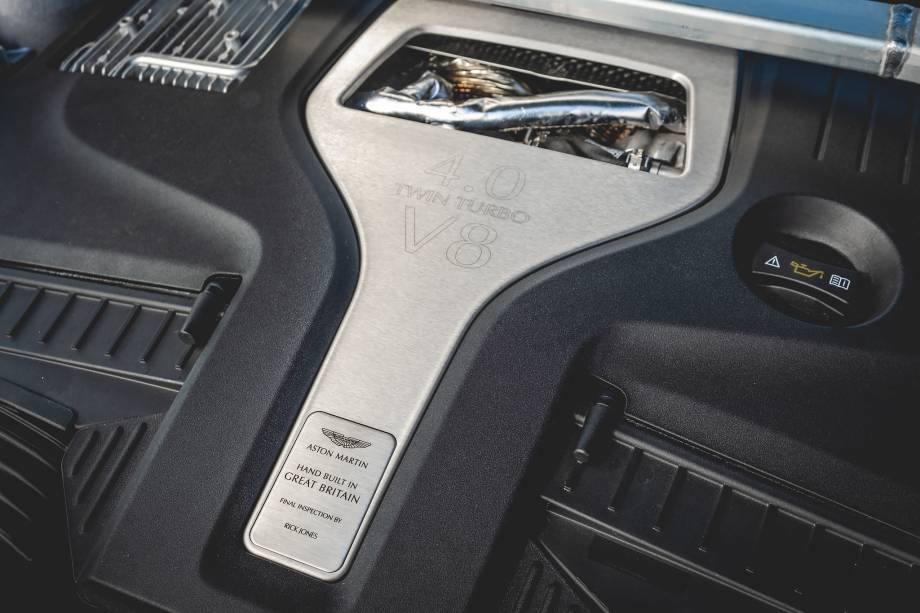O aerofólio integrado à tampa do porta-malas também vem dos esportivos da Aston Martin e mantém a luz de freio interligando as extremidades. A tampa tem abertura elétrica e o porta-malas (com 632 litros) ainda acomoda um estepe temporário e um… guarda-chuva. Porque a probabilidade de estar chovendo em qualquer lugar do Reino Unido quando o pneu furar é enorme.