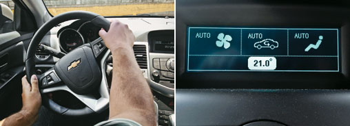 O ruído do atrito do couro com o plástico não é alto, mas é constante e irritante (esq.) | Como na estreia, o ar-condicionado deixa de refrigerar sem nenhum motivo aparente (dir.)
