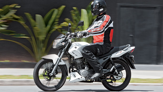 A posição de pilotagem é confortável, braços semiflexionados em guidão alto, tronco reto, pernas um pouco recuadas e bem encaixadas oferecem facilidade na condução e no acionamento dos comandos. Os punhos são do tipo universal, só faltou o corta-corrente, já que a moto tem lampejador de farol alto e ainda é possível desligá-lo.