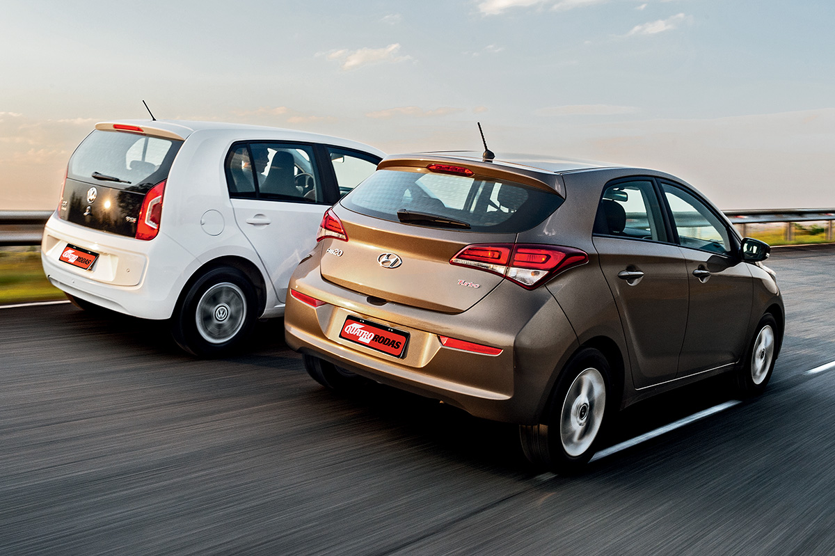 Na cidade, verdadeiro habitat desses hatches divertidos, a vantagem do VW sobre o Hyundai é ainda maior. De acordo com o resultado apresentado em nosso teste de pista (10 km/l), o HB20 roda até 500 km com um tanque. O Up!, 45% mais econômico (média de 14,5 km/l), só pediria uma parada para reabastecimento depois de 725 km.