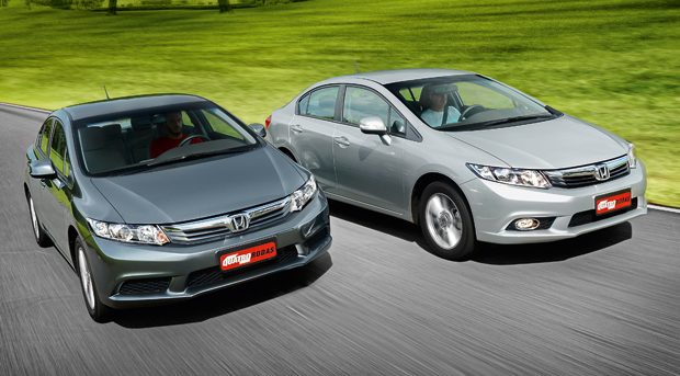 Superstição ou não, o Civic 2013 praticamente não existiu. Ou melhor, existiu só no documento. O modelo 2013, que foi lançado em agosto de 2012, não tinha alterações em relação ao modelo 2012 (que estreou em dezembro de 2011). Agora a Honda acelera a folhinha e apresenta o Civic 2014, que traz boas-novas. Começa pelas versões disponíveis. Os nomes mudaram e no lugar de cinco opções – LXS e LXL (ambas manual e automática) e EXS (automática) – ficaram quatro: LXS (manual e automática) e LXR e EXR (automáticas). A LXS continua com motor 1.8, mas recebeu novo câmbio manual de seis marchas, em vez de cinco. E as outras ganharam novo motor 2.0. Aqui, nós alinhamos as versões 1.8 LXS manual e 2.0 LXR automática para um teste duplo.