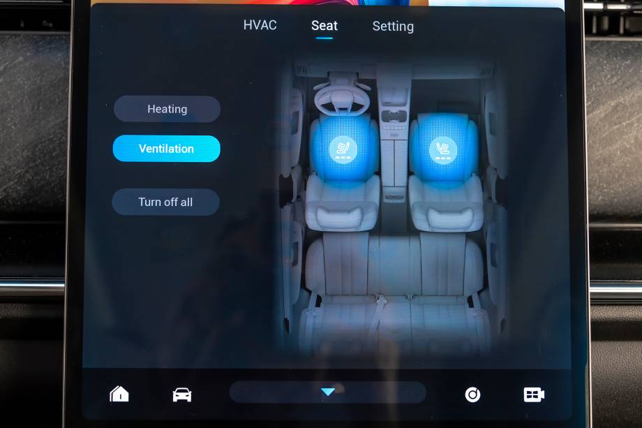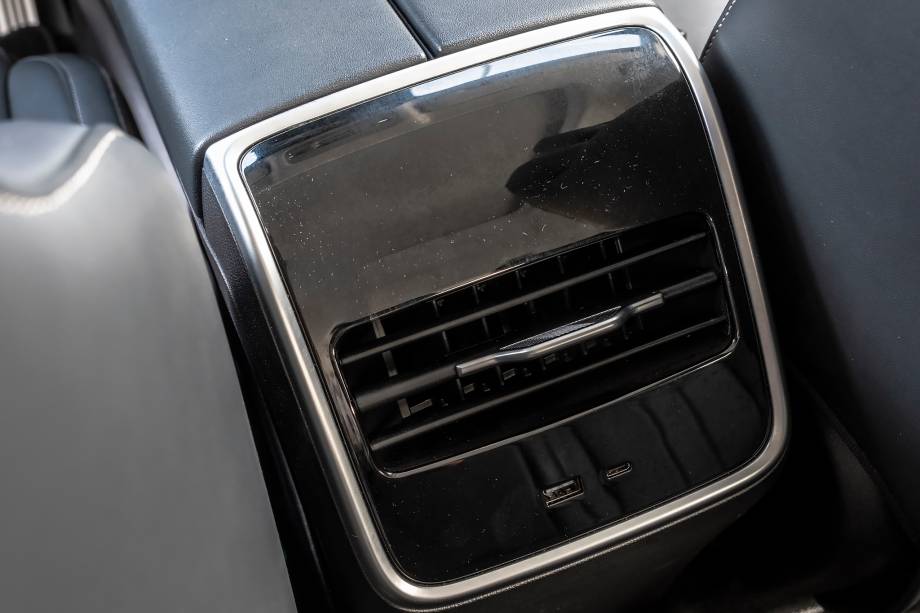 A tela é boa e não trava, mas o carro ainda depende um tanto desta tela. É necessário navegar por ela para descobrir funções interessantes para um caro deste segmento, como a ventilação (para os dianteiros) ou o aquecimento dos bancos (para quatro ocupantes) ou mudar a cor da iluminação ambiente, mas também para coisas mais banais, como ajustar os retrovisores (o controle é feito pelo volante) ou escolher uma das memórias de posição do banco do motorista (os dois dianteiros são elétricos).