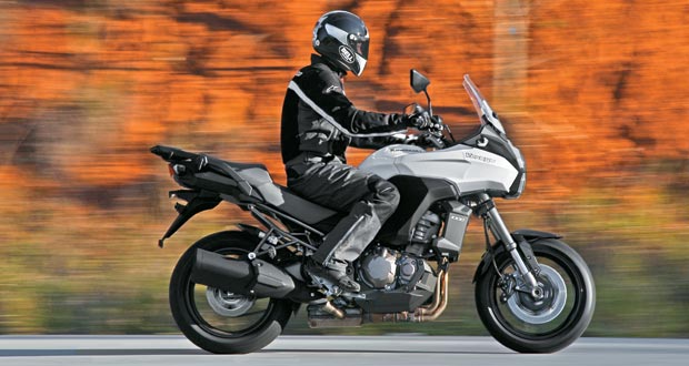 A Kawasaki conseguiu manter quase toda a leveza e agilidade da Versys 650 nesta 1000 de quatro cilindros, muito mais potente e pesada. Ao guidão, a impressão é a de que a Versys 1000 é mais equilibrada que a potente Ducati Multistrada 1200, com seu V2 de 150 cv. A ausência de vibrações e de ruídos do motor em linha é certamente uma bela vantagem da japonesa.