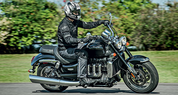 Como ocorre com motos grandes, a Triumph Rocket é pesada quando parada – e em baixíssimas velocidades – e fica leve em movimento. Estacionar em uma ladeira ou sobre piso irregular é, desculpe o trocadilho, uma parada dura. Andando, ela mostra-se fácil de ser conduzida e obediente para seguir as trajetórias desejadas. É preciso fazer um pouco de força para incliná-la, mas nada extraordinário, e as pedaleiras teimam em raspar pelo chão quando se deita um pouco a mais a motocicleta.