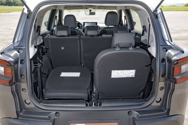 A Spin continua com o rebatimento tradicional da terceira fileira por meio de duas alças e com ela rebatida tem 553 litros de porta-malas, enquanto o Aircross, sem a presença dos dois bancos, traz uma capacidade menor, com 493 litros. Com os sete assentos montados, sobram 50 litros no Citroën e 162 litros na Chevrolet – mais que o triplo.