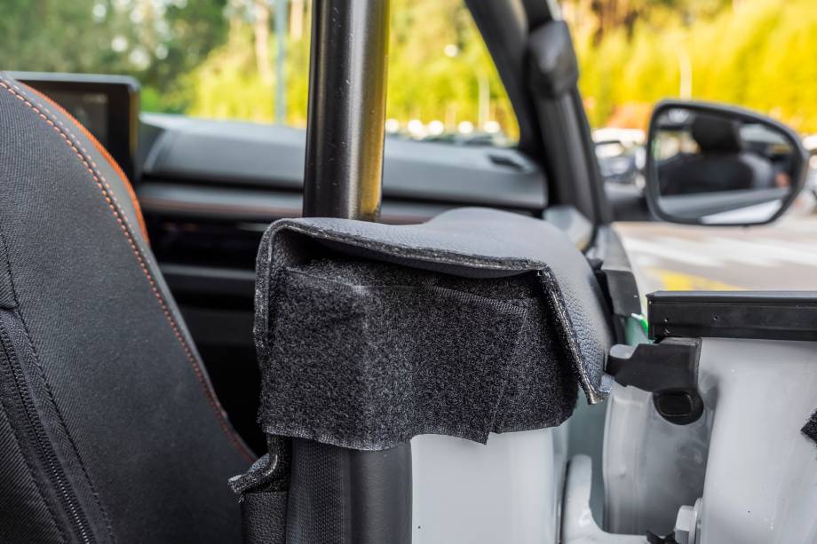 Dirigir sem cintos de segurança também é particularmente estranho, mas a velocidade, mesmo na área externa da fábrica, foi limitada. Ainda assim, deu para notar que a retirada do teto deixou a carroceria com uma movimentação diferente e a suspensão mais firme.