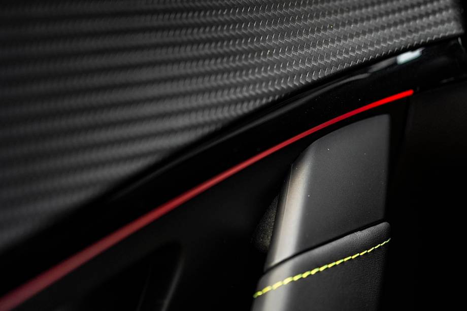 Quer dizer que a parte superior do painel é emborrachada, as portas têm puxadores e eles são revestidos de couro, e o console central é completamente diferente, mais alto e com seletor de marcha do tipo joystick, além do freio de estacionamento elétrico.