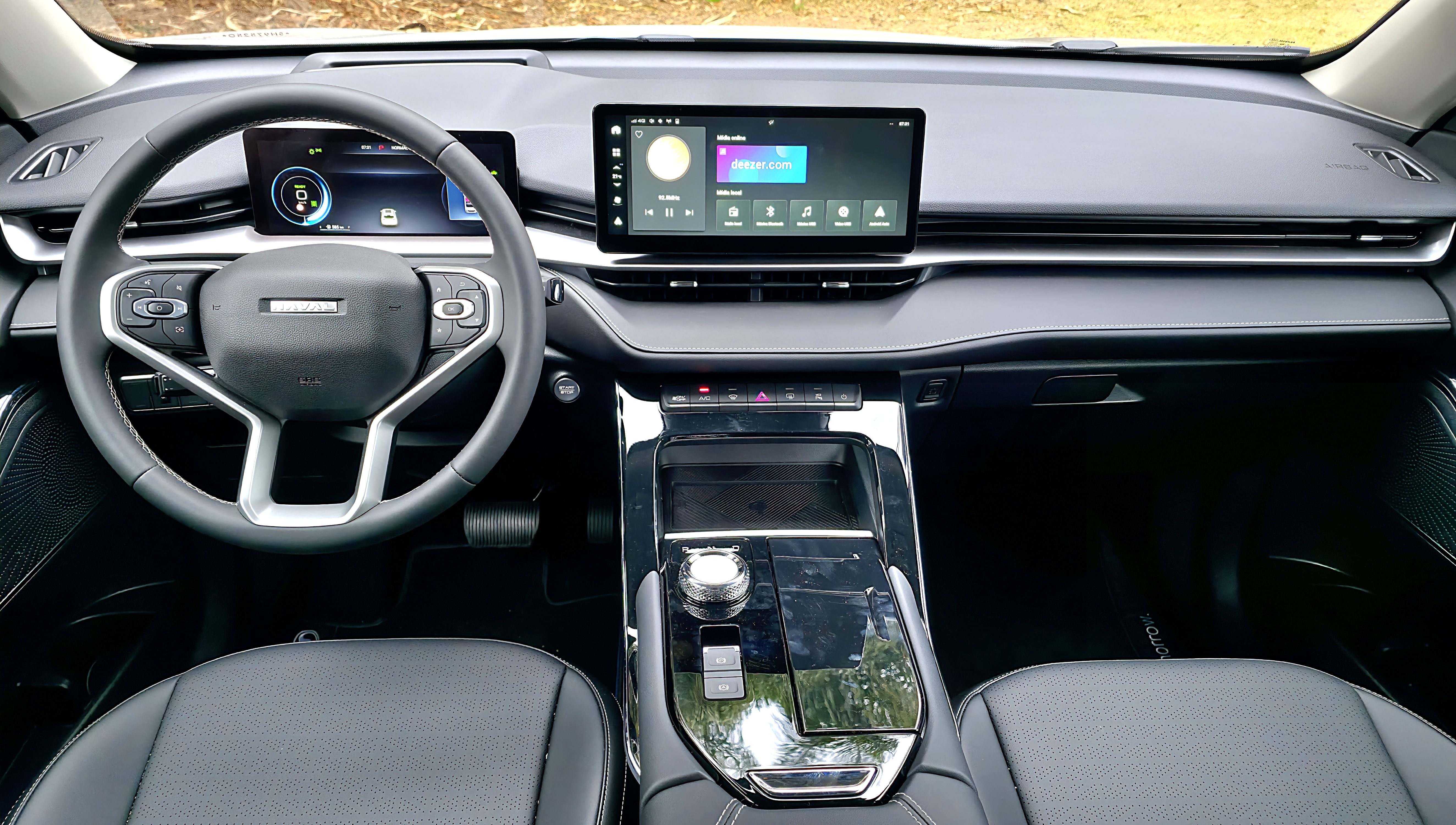 Foi uma seleção bem acertada e que não deixa o Haval H6 One parecer “pelado”. A central multimídia ainda usa um display de 12,3” e com conexão sem fio com Android Auto e Apple CarPlay; atrás do volante está o quadro de instrumentos digital de 10,25”, que não é tão configurável, mas com ideias interessantes como mostrar os veículos ao redor.